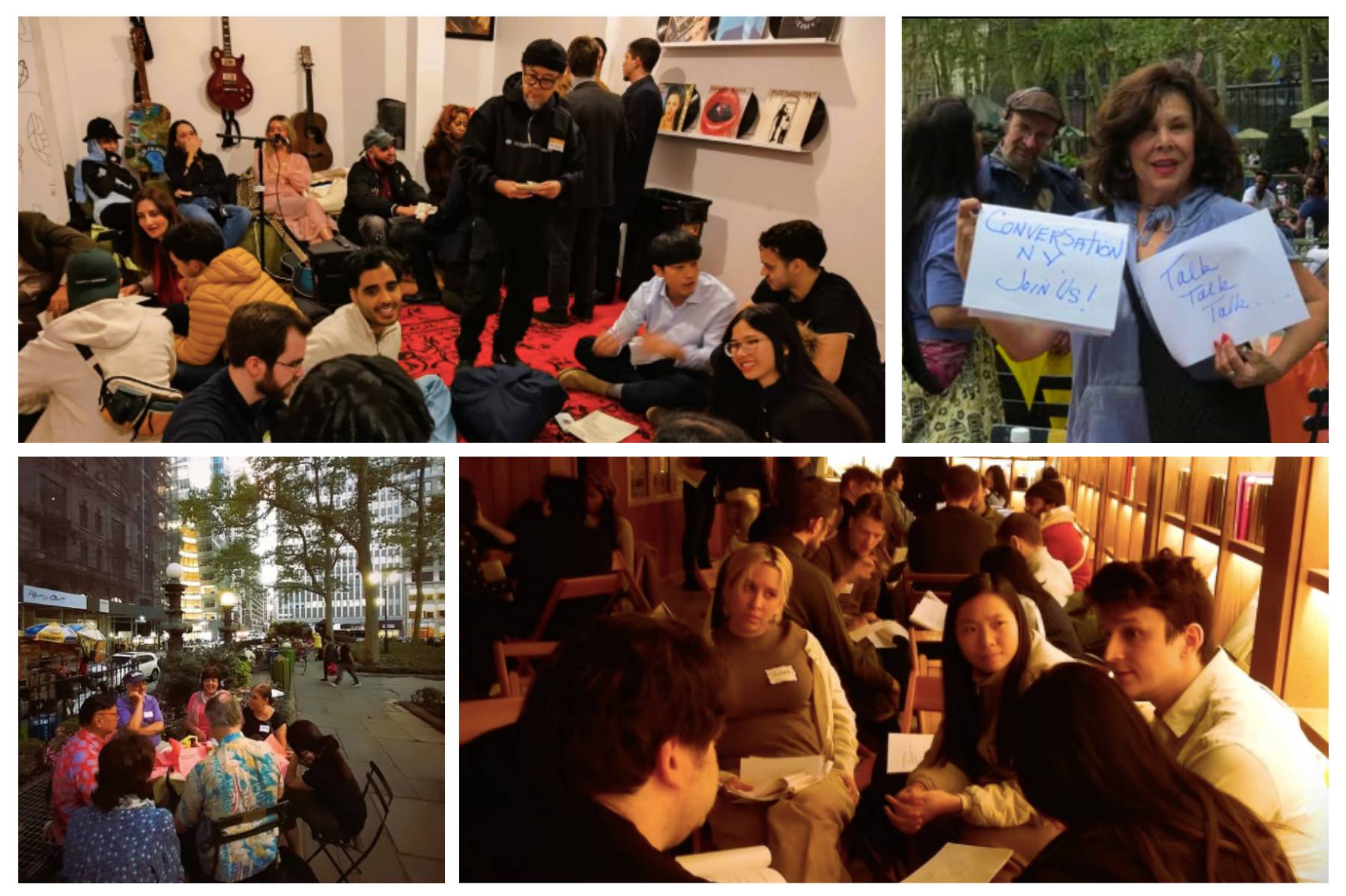 A cena é curiosa: centenas de jovens lotam bares e bibliotecas, mas com uma regra: nada de celular. A pessoa chega, recebe um crachá só com o primeiro nome — ninguém liga para sobrenome ou cargo — e ganha um roteiro de perguntas. Em vez de falar sobre o tempo, grupos de estranhos mergulham direto no profundo: "Você acredita na verdade objetiva?” Ou "O que é o sofrimento?" Ou ainda "Existe propósito?"